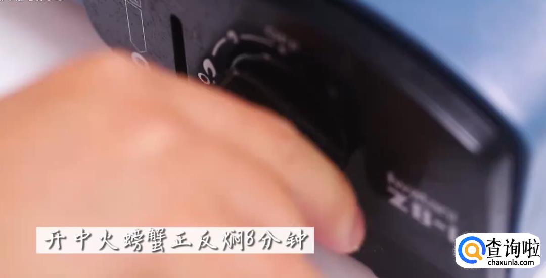 到时间后打开盖子,把螃蟹翻一个面,再焖3分钟。