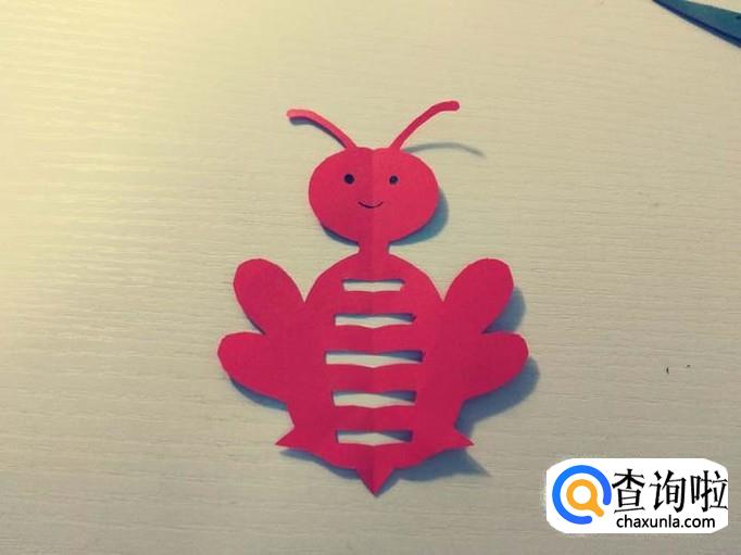 将剪好的纸展开,一只小蜜蜂的形态就出来了
