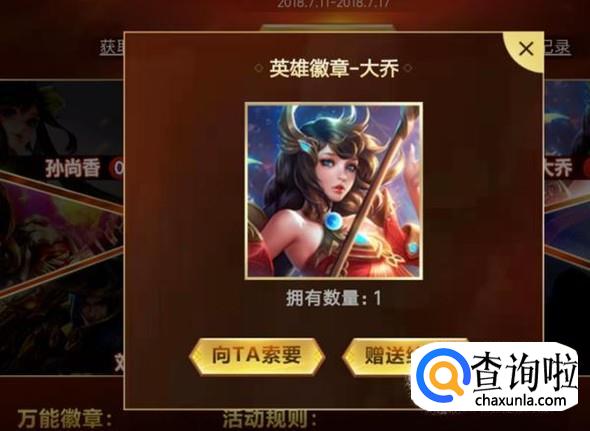 收集齐七张徽章之后,即可合成兑换钥匙,然后用钥匙去兑换孙策英雄,如图所示。