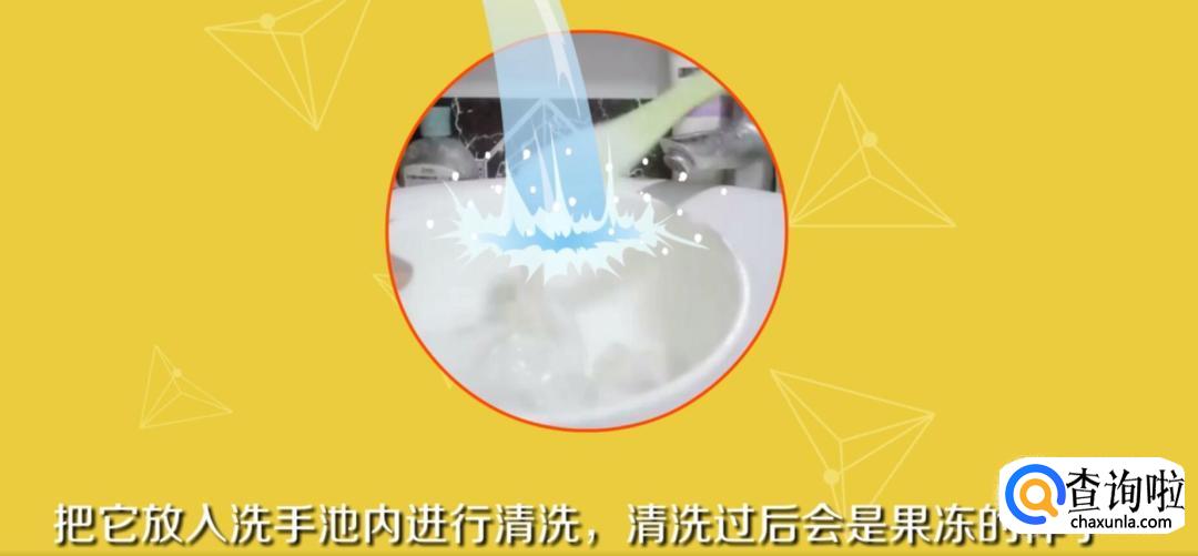 把它放入洗手池内进行清洗,清洗后会出现果冻的样子。