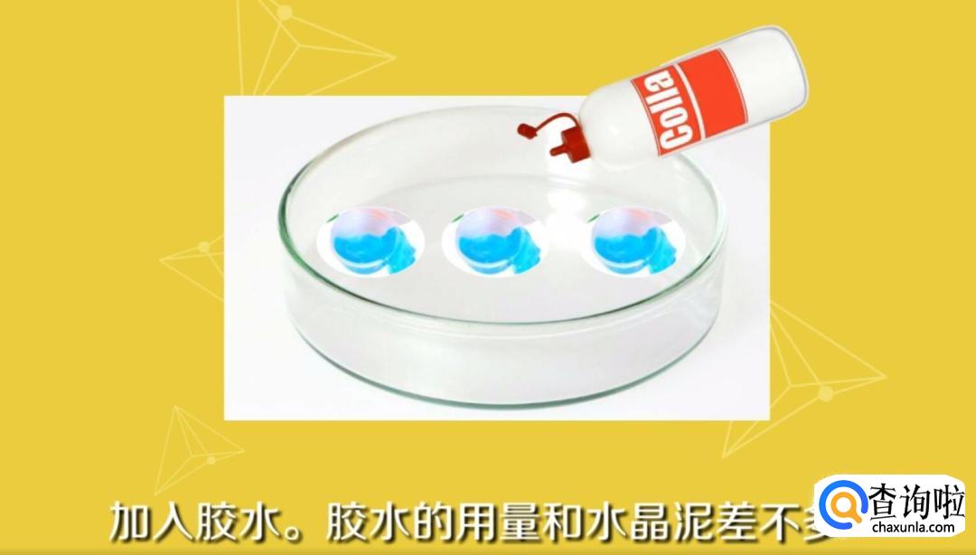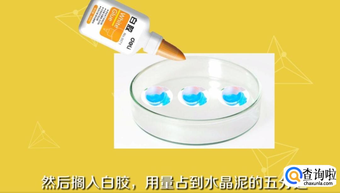 放入容器后,我们放入白胶,白胶的用量需占水晶泥的五分之一。