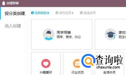 点击+号之后,我们点击下拉选项中的“创建群聊”,这时即可弹出图二所示的创建群聊对话框了;