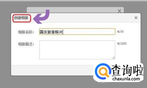 点击上传然后系统会要求我们创建一个相册,我们需要为其命名,在上传照片的时候我们选择“空间选图”;