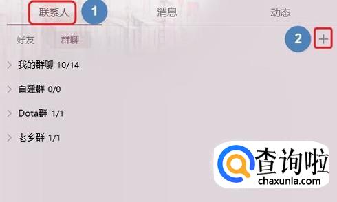 小编以目前最新的2018版QQ为例,打开QQ面板之后切换到“联系人”处,这时我们会在页面的右上角看到一个“+”号;