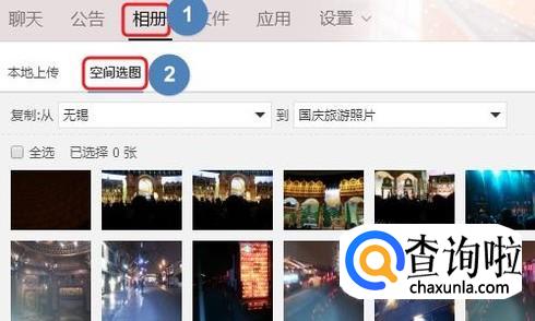 我们可以随意创建一个,创建好群之后点击打开聊天窗口,我们会在上方看到一项“相册”,对应的页面右侧有一项“上传照片”,如图二所示...