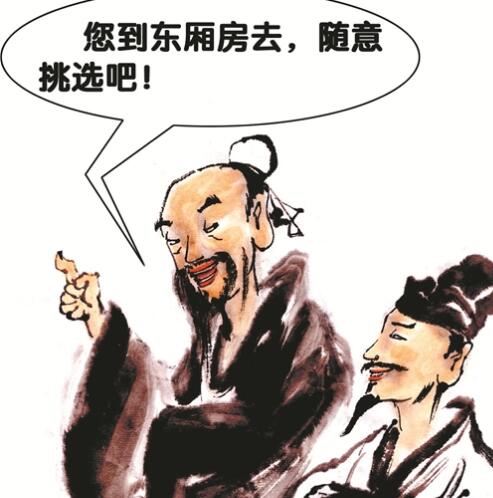 郗府管家回到府中,对郗太尉说:“王府的年轻公子二十余人,听说郗府觅婿,都争先恐后,唯有东床上有位公子,袒腹躺着若无其事。”郗鉴说:“哈哈,我要选的就是他了!”郗鉴来到王府,见此人既豁达又文雅,才貌双全,当场下了聘礼,择为快婿。"东床快婿"又称"东床坦腹"一说就是这样来的。这“东床快婿”王羲之就是大名鼎鼎的书法家,被后人称之为“书圣”。