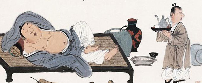 一天早朝后,郗鉴把自己择婿的想法告诉了王丞相。王丞相说:“那好啊,我家里子弟很多,就由您到家里挑选吧,凡你相中的,不管是谁,我都同意。”郗鉴就命管家,带上厚礼,来到王丞相家。王府的子弟听说郗太尉派人来觅婿,无不卯足了劲,仔细打扮一番出来相见,唯盼中选。郗府管家看来看去,感觉王府的青年才俊个个都很好。最后,郗府管家来到东跨院的书房里,就见靠墙的床上一个袒腹仰卧的青年人,原来王羲之在来相府半路上再三赏玩东汉著名书法家蔡邕的古碑后,沉迷不已,什么事都不放在心上,相亲的事早忘光了。当他急急忙忙来到相府,因为天气实在太热,就随手脱掉外衣,袒胸露腹,边喝着茶,边想着蔡邕的书法。管家见他这般神情,惊呆了,问他话也不答理。