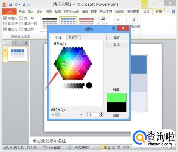 打开PPT之后我们找到插入选项里的表格选项,如图所示: