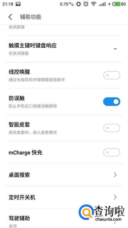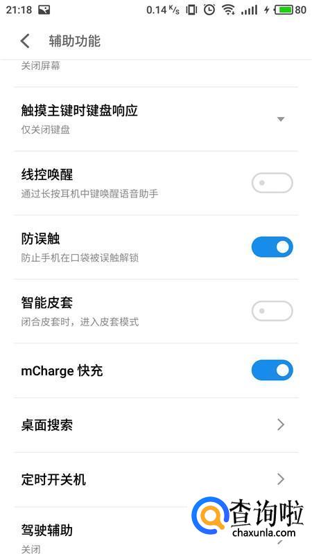 进入辅助功能界面,找到闪充选项,将右侧滑块开启。