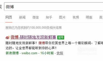 然后点击微博官网,如下图所示。