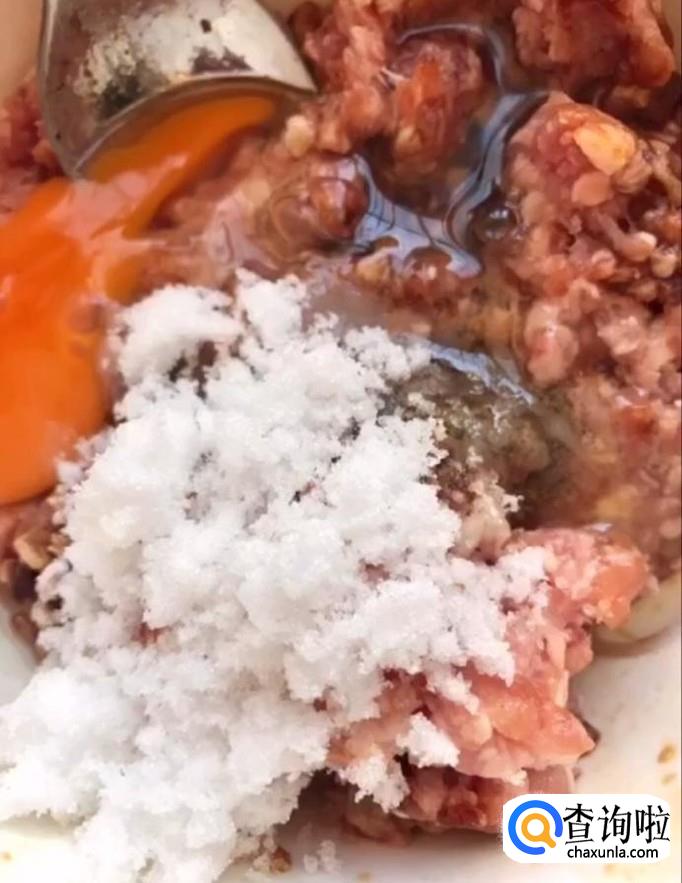 首先我们将猪瘦肉剁成肉泥,放入盆中备用