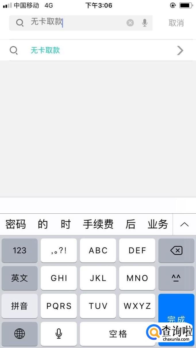 登录APP后,在主页面打字搜索“无卡取款”