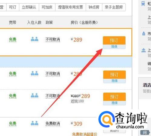 选择自己想要居住的房间,点击“预定”,如图所示。