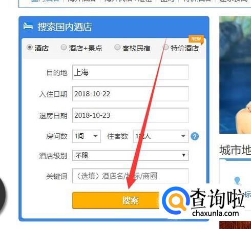 进入之后,设置好自己想要居住的酒店的条件,点击“搜索”,如图所示。