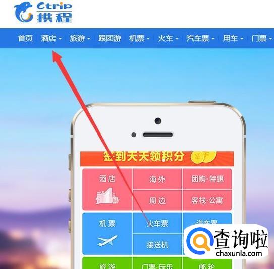 进入之后,点击“酒店”,进入下一页面,如图所示。