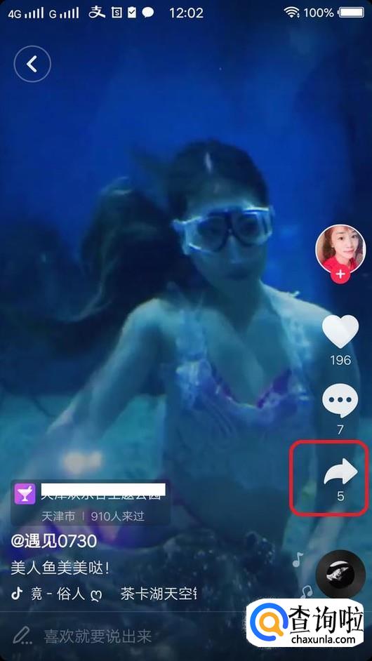 进入视频页面后,可以看到右侧下方有一个分享按钮,如图所示,点击一下。
