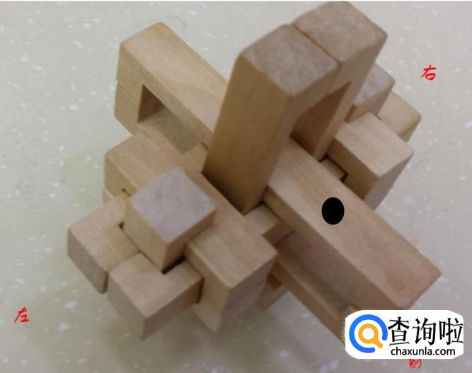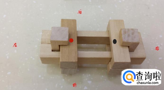 接着,我们把标记的红色和黑色小木条向右向左分别取出,下面相对的小木条也用相同的方法取出。