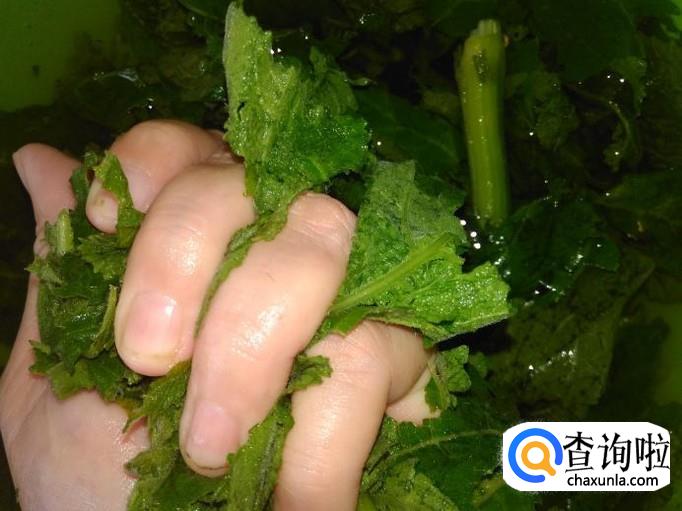 再用手把叶子抓软,捞上篮子。