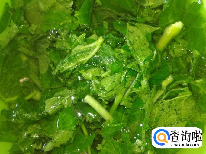 把南瓜苗老梗去掉,然后把嫩梗皮根须撕去,放置水里泡洗。