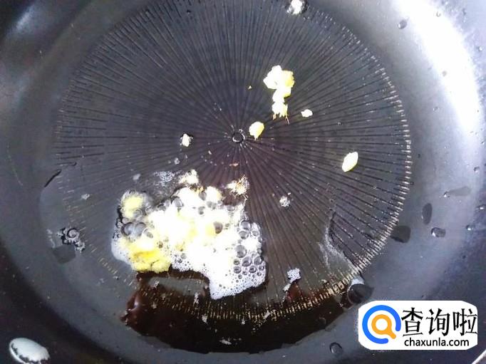 开火下油,放蒜米进去爆香。