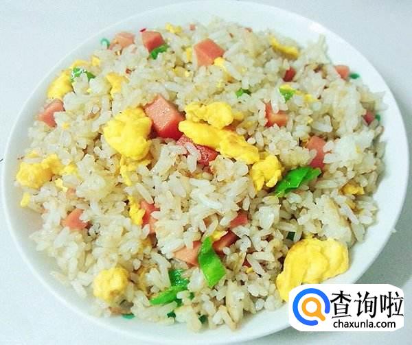 2.鸡蛋打散,下油锅中炒熟划碎,然后盛出。炒锅里倒入少许油,烧热后放入猪肉未炒几下,再放入胡萝卜丁,青豆,玉米粒,酱油一起炒熟,最后加少许盐调味。