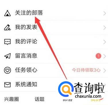 进入之后,点击“关注的部落”,进入到下一页面,如图所示。