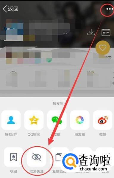 进入之后,点击图示位置按键,然后选择“取消关注”即可,如图所示。