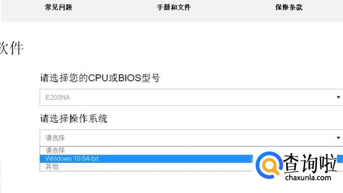 接下来的界面里,先在第一个选择框里选择你的笔记本型号,再在第二个选择框里选择你的系统。