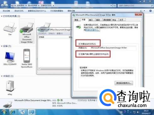 在对话框的共享中,勾选共享这台打印机,然后点击确定,就可以共享打印机了。