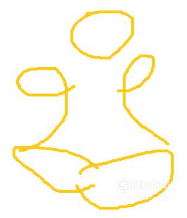 左边手的下方画一个半圆形状多一点,代表盘腿,右边同理,两个腿要交叉。