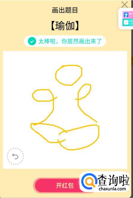 此时发现可以开红包了,说明画对了,点击开红包即可。