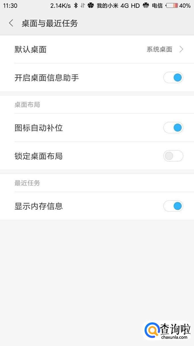 进入系统设置,下滑找到桌面与最近任务,然后点击打开;