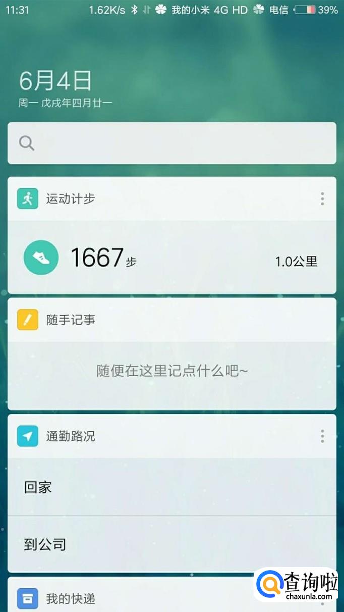 在手机桌面的情况下往左滑动会出现负一屏,里面有记步信息以及生活指南等,想要关闭就返回桌面;