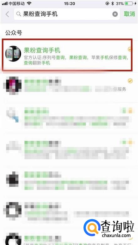 然后输入果粉查询手机并点击搜索,如下图所示。