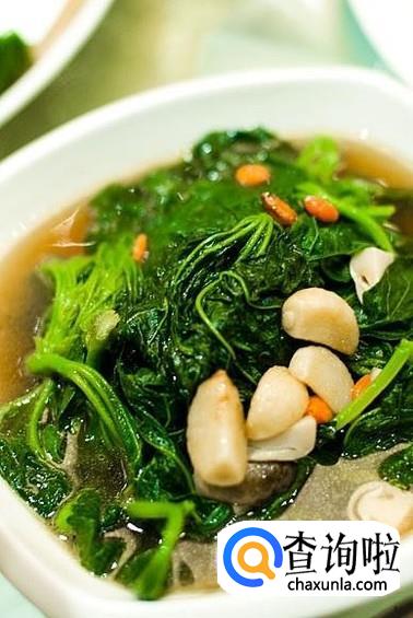 上汤冬寒菜,冬寒菜洗干净切段备用,蒜头切成末备用,鸡汤一碗准备好,锅中倒入适量的油,倒入蒜末爆香,倒入冬寒菜翻炒,倒入鸡汤煮开,加盐,胡椒粉调味即可