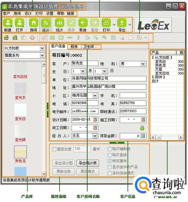多个房间的设计图、统计表可以自动汇总打印或导出。