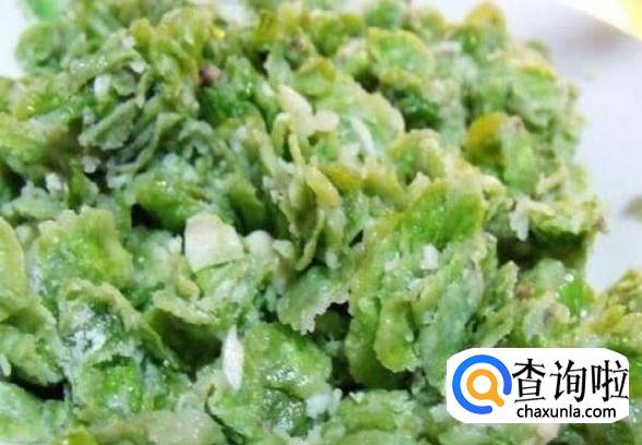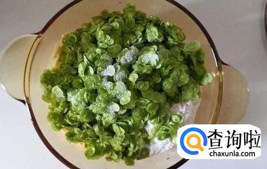 制作方法:把榆钱洗净,沥干水份,然后加豆面、玉米粉、葱姜末以及盐、味精等调味料并搅拌均匀,放入蒸锅中,15分钟后取出即可。 - 06