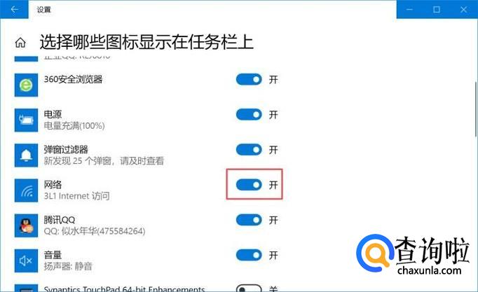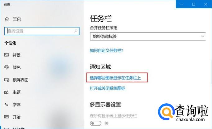 弹出的界面,我们点击选择哪些图标显示在任务栏上;