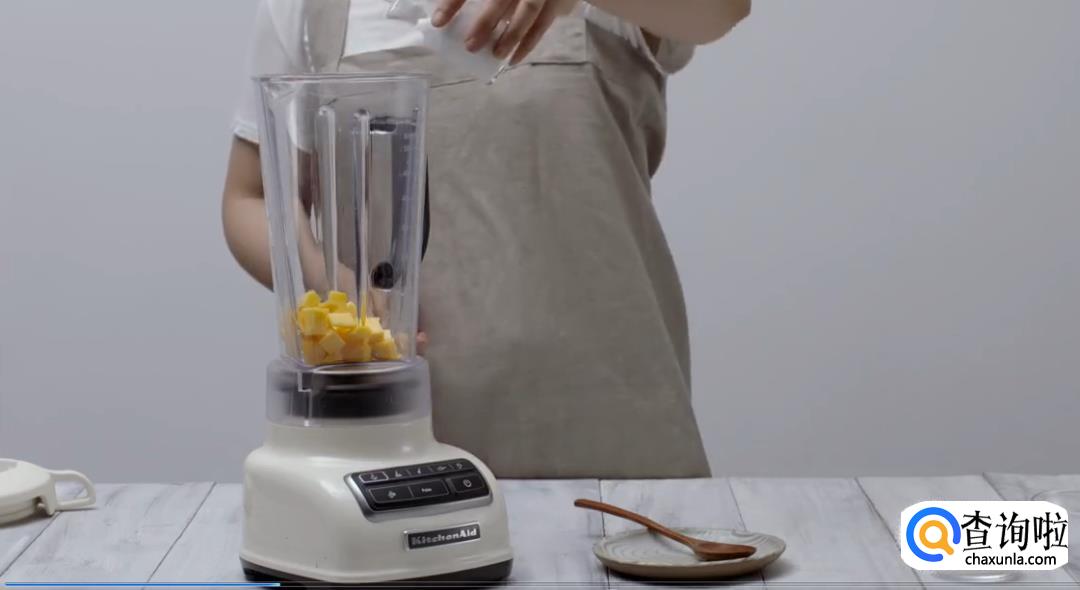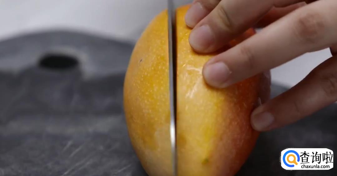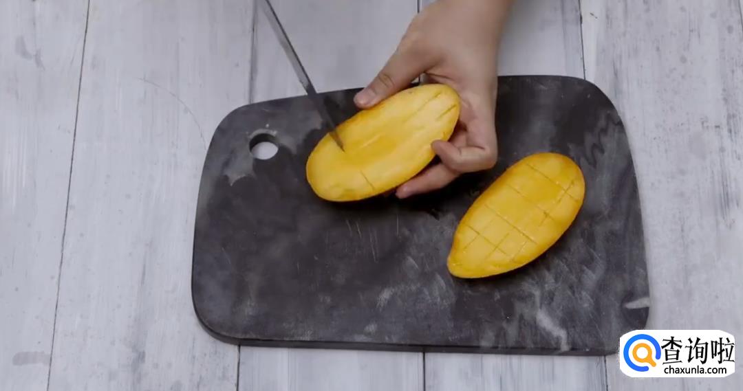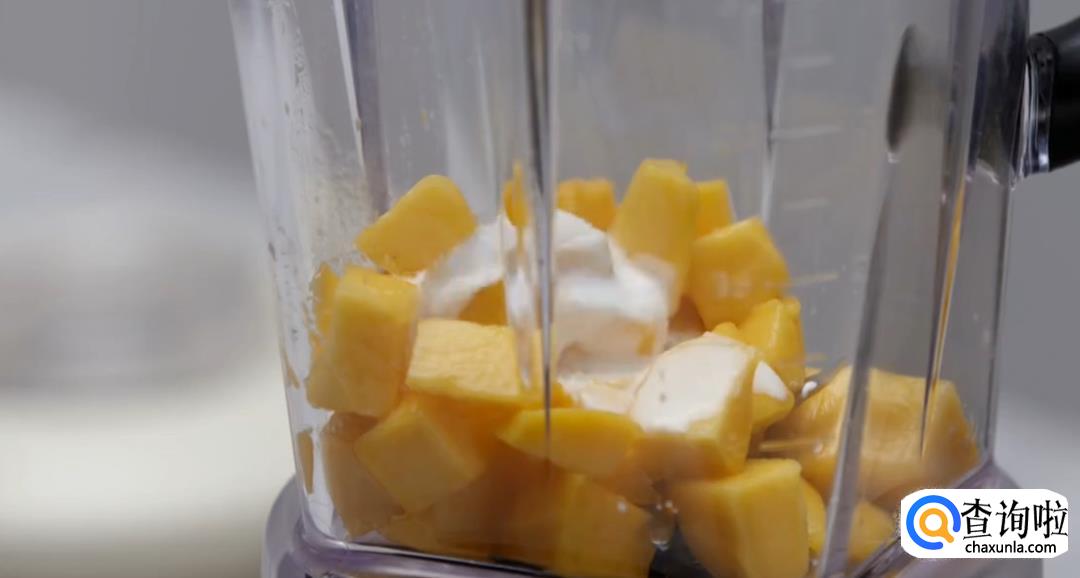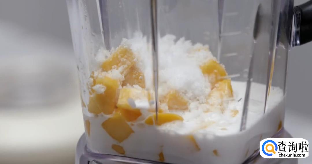 洗净芒果,将其切成方块,倒入搅拌机中打碎。