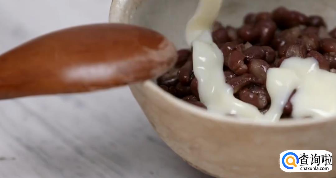 将红豆沙中加入炼乳,搅拌均匀后冷藏。