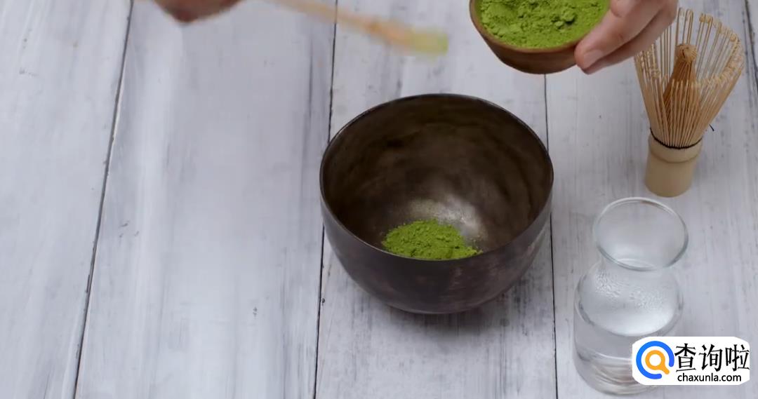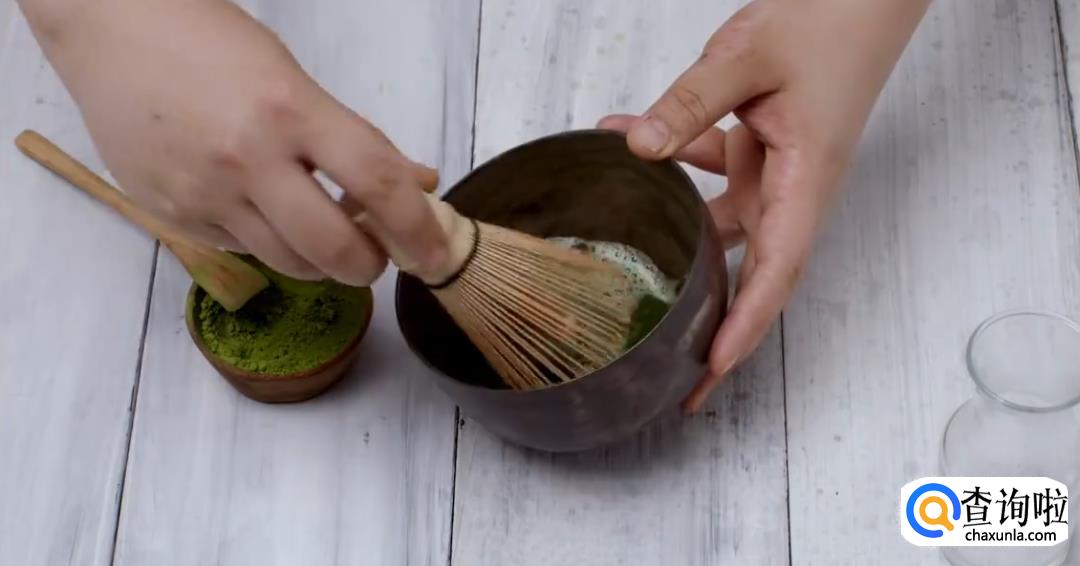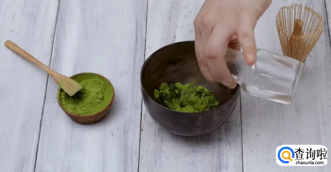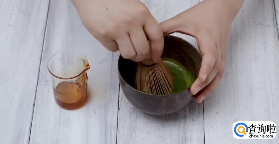 抹茶粉加80℃热水打匀。