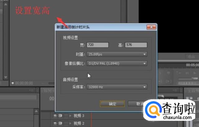 接下来会弹出新建通用倒计时片头界面,我们需要设置宽高值等信息,如下图所示