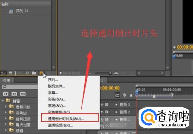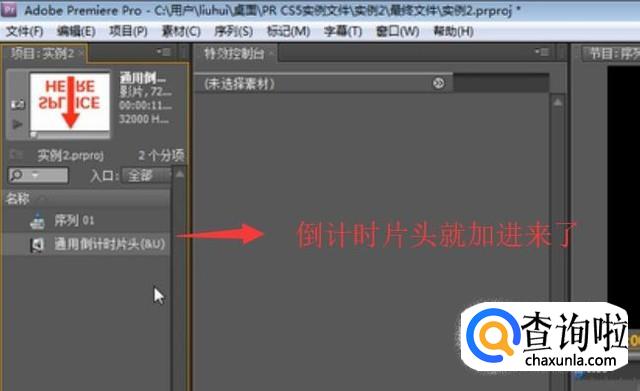 接下来回到Premiere界面,这个时候大家就会看到左侧界面中已经有倒计时片头项了,如下图所示