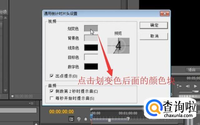 接下来会进入倒计时片头的色彩设置界面,我们点击划变色后面的颜色框,如下图所示