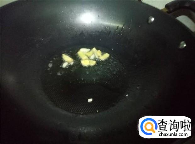 热锅下油,放入姜和蒜头煸香,然后倒入竹笋翻炒。