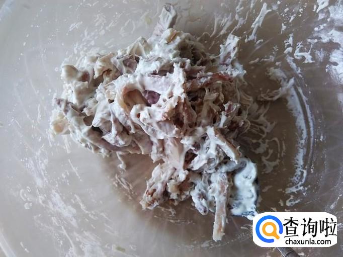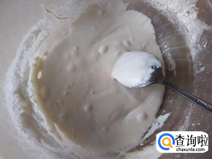 糯米粉加少量的水搅拌成糊。