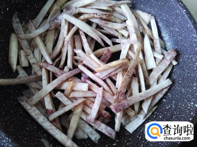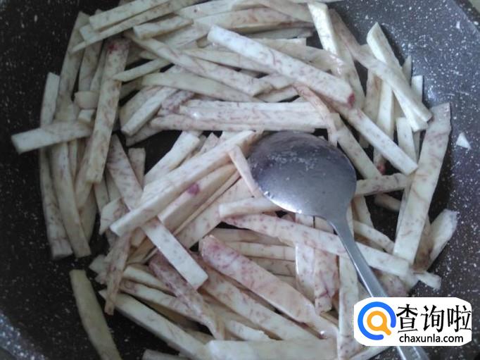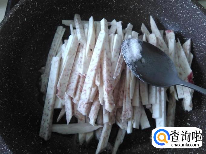 芋头丝下锅,加适量的盐翻炒一下。