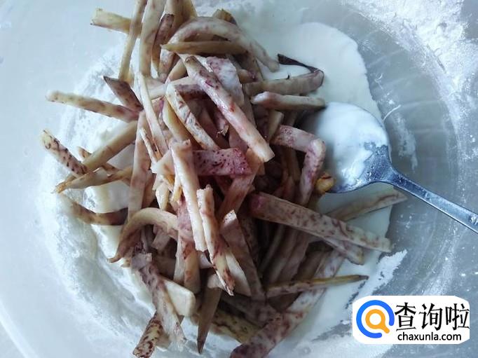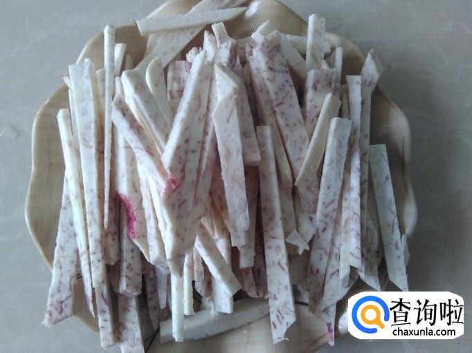 把香芋切成丝。