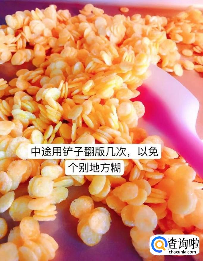 大家在烤玉米片的过程当中要用铲子多翻拌几次,以免个别地方烤焦了。