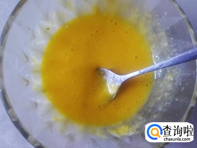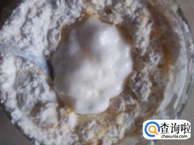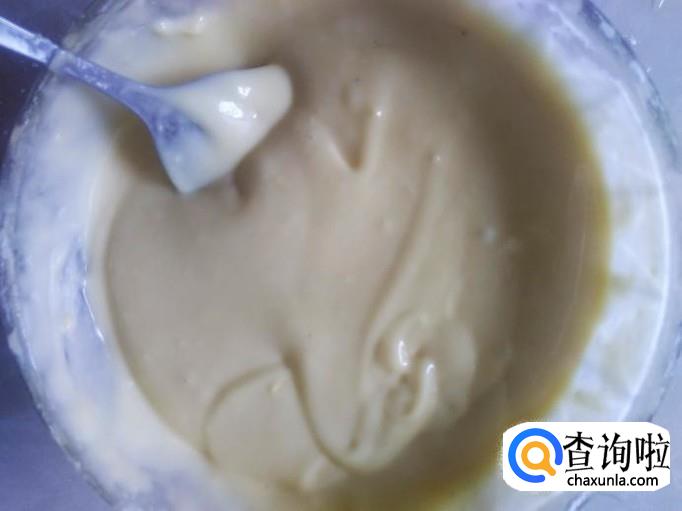 蛋黄里加30克的奶粉进去搅拌均匀。